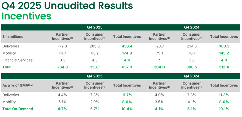 Grab, Southeast Asia’s delivery and ridehailing heavyweight, posted its 2025 financial results, with the company posting its first full-year net profit, off of 20% revenue growth. But tucked into its supplemental data is some particularly interesting data: despite the push towards profitability, the company can’t kick its habit of incentivizing both consumers and partners, with delivery incentives actually growing as a % of GMV YoY. This is an issue the industry struggles with worldwide, with many platform users trained to only transact once they’ve been dangled a special offer…